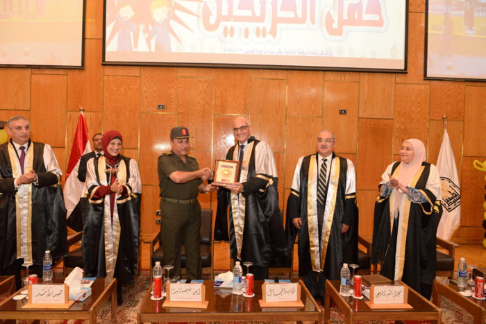 قدم الدكتور طارق الجمال رئيس جامعة أسيوط درع الجامعة إهداءً للواء أركان حرب أيمن نعيم قائد المنطقة الجنوبية العسكرية خلال مشاركته في احتفال الجامعة بتخريج الدفعة الثانية من كلية طب الأسنان والذي شهد حضور الدكتور إيهاب سعيد عميد الكلية السابق ، والدكتور ياسر الجندي نقيب أطباء الأسنان بمصر ، والدكتورة نجلاء طه المليجى وكيلة الكلية لشئون التعليم والطلاب ، والدكتورة هبة الله جمال راشد وكيلة الكلية لشئون خدمة المجتمع وتنمية البيئة، والدكتور أبو بكر شريت نقيب النقابة الفرعية لأطباء أسنان أسيوط ، ولفيف من ضباط وقادة المنطقة الجنوبية العسكرية وحشد من أعضاء مجلس الجامعة وأعضاء هيئة التدريس وخريجي الدفعة وأولياء الأمور.