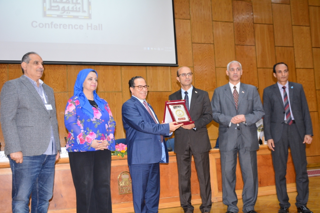 وفى ختام الندوة قدم الدكتور المنشاوى درع جامعة اسيوط للدكتور سعيد البطوطى