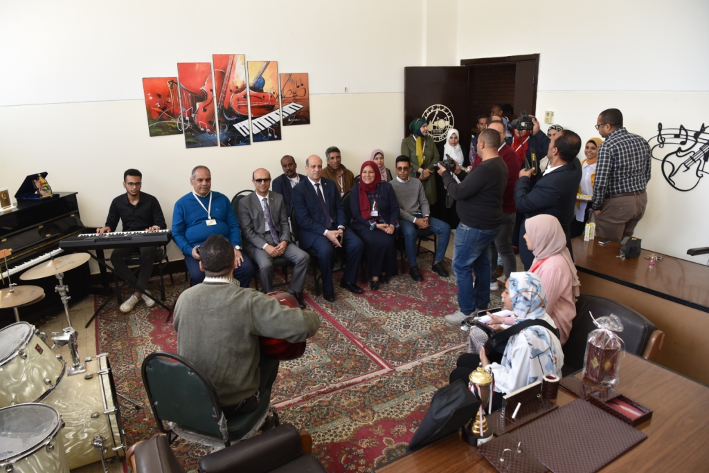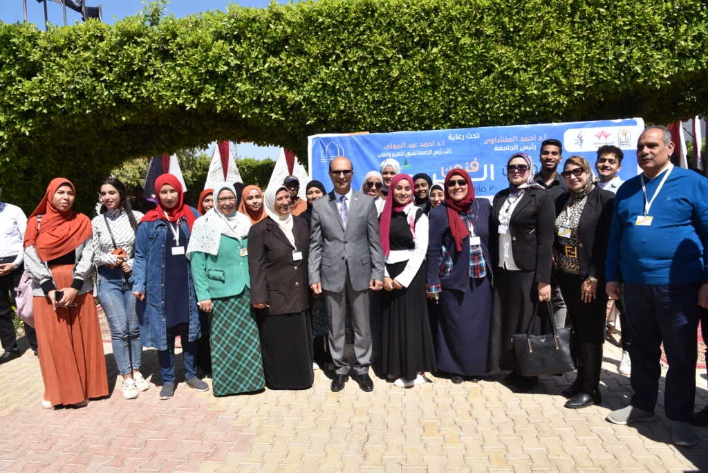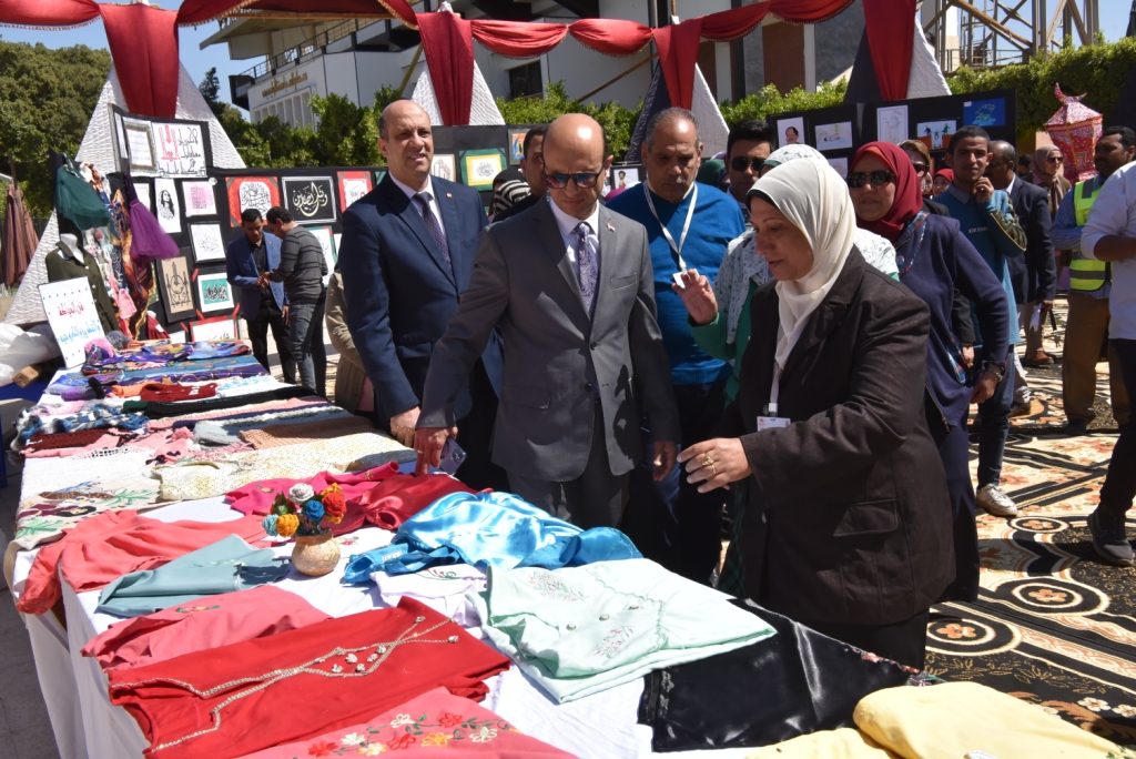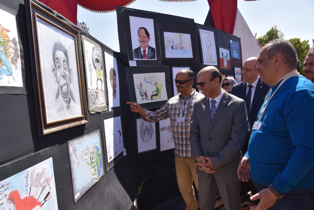وخلال الافتتاح أكد رئيس الجامعة علي أهمية الأنشطة الطلابية وذلك لدورها الهام في تنمية وعي الطلاب وصقل شخصياتهم وتنمية مهاراتهم وقدراتهم الإبداعية , حيث قام سيادته بإفتتاح عدداً من المعارض الفنية والتي تضمنت مهرجان فنون الربيع " معرض المسابقات الفنية بإدارة الفنون " والذي يضم معروضات عن الكاركتير والخط العربي وفنون الإبرة وفوانيس رمضان , ومشغولات كروشية وهاند ميد وتطريز والتي شاركت بها مختلف الكليات العلمية والأدبية , أعقب ذلك إفتتاح سيادته معرض الفنون التشكيلية والذي يضم عدداً من اللوحات منها رسم وتصوير , نحت وزخرفة , أشغال فنية , جرافيك وطباعة , إعلان وخط عربي , تصوير ضوئي , ثم قام رئيس الجامعة بإفتتاح قاعة الفنون الموسيقية والتي تضم عدداً من آلات العزف المختلفة .