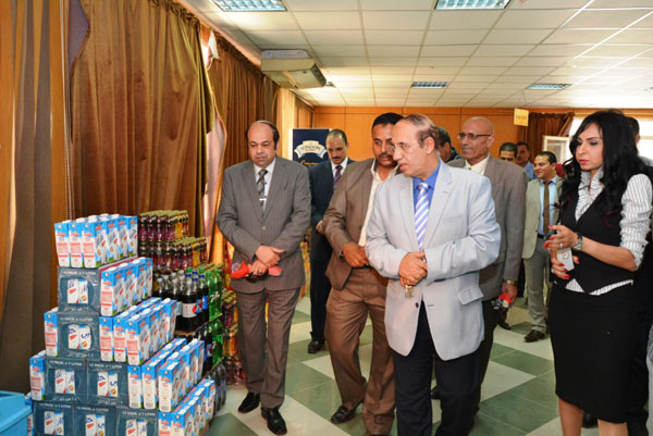 وقد تفقد رئيس الجامعة أجنحة المعرض المختلفة والتى تتضمن العديد من أنواع اللحوم والدواجن والسلع الغذائية إلى جانب بعض السلع الرمضانية حيث شدد على ضرورة الالتزام بتوفير السلع المعروضة بأسعار مخفضة ومتابعة التأكد من جودة سلامتها والمتعلقة بمطابقة شروط التخزين ومدة الصلاحية خلال أيام العرض ، وأضاف أن المعرض يأتي فى إطار إسهام الجامعة مع ما تتخذه الدولة من خطوات لمكافحة زيادة الأسعار وتوفير السلع الغذائية بأسعار مخفضة خاصة مع قرب حلول شهر رمضان الكريم ، موضحاً أن المعرض يهدف إلى التيسير على مختلف الشرائح الاجتماعية داخل أسرة الجامعة ومحاولة تخفيف العبء عن كاهلهم ، معلناً أنه من المقرر أن تقوم إدارة الجامعة بتوزيع نحو ألف كرتونة رمضانية مجاناً على العمال من غير القادرين بمختلف كليات وقطاعات الجامعة وذلك خلال الأيام القليلة القادمة .