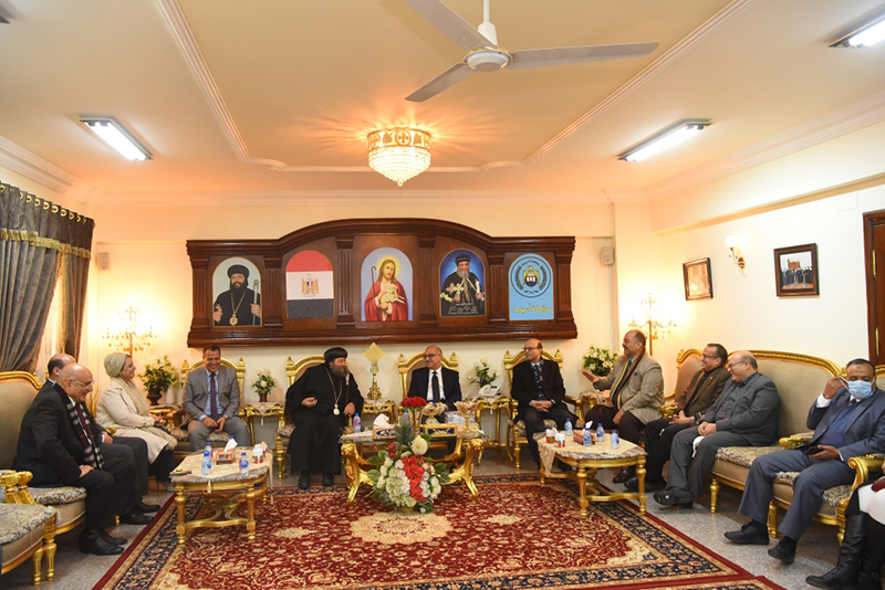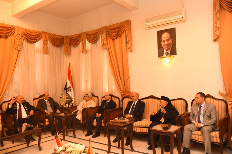 جاء ذلك خلال زيارة رئيس جامعة أسيوط إلى عدد من كنائس و أديرة أسيوط لتقديم التهنئة إلى الأخوة الأقباط بمناسبة عيد الميلاد المجيد ، والتي رافقه فيها الدكتور شحاتة غريب نائب رئيس الجامعة لشئون التعليم والطلاب والدكتور أحمد المنشاوي نائب رئيس الجامعة لشئون الدراسات العليا و البحوث ، والدكتورة مها غانم نائب رئيس الجامعة لشئون خدمة المجتمع وتنمية البيئة و الدكتور وجدي رفعت نخلة عميد كلية التربية النوعية والدكتور علاء عطيه عميد كلية الطب ورئيس مجلس إدارة مستشفيات أسيوط الجامعية ومديرها التنفيذى الدكتور إيهاب فوزى ، ، و الدكتور مصطفى السعيد الأستاذ المتفرع بقسم طب الأطفال ، والأستاذ شوكت صابر أمين عام الجامعة ولفيف من القيادات الجامعية .