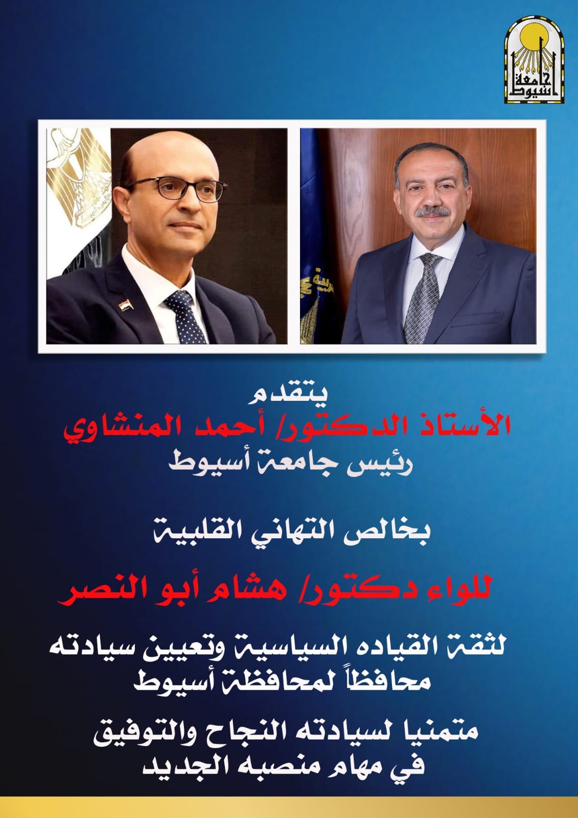 وأكد الدكتور المنشاوي: إن هذا القرار الذي يتضمن ثقة القيادة السياسية؛ يعد تتويجاً لسجل حافل ظهرت نتائجه واضحة جلية على صفحة أعمال اللواء هشام أبو النصر؛ بدعم القيادة السياسية بقيادة الرئيس عبد الفتاح السيسي، وتأكيدًا للدور البارز في تحقيق التنمية في شتى المجالات، وخدمة المواطنين، متمنياً لسيادته مزيداً من التقدم، والرقي، وتحقيق الإنجازات للمجتمع الأسيوطي، واستكمال منظومة التنمية الشاملة، سائلاً المولى- عزوجل- أن يحفظ مصرنا الغالية؛ في ظل القيادة السياسية الحكيمة.