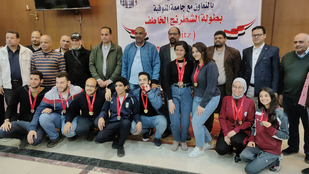 هنأ الدكتور أحمد المنشاوي القائم بعمل رئيس جامعة أسيوط، أبناءه الطلاب الفائزين بالمراكز الأولى في بطولة الشطرنج الخاطف ضمن فعاليات دورة الشهيد الرفاعي رقم 50 للجامعات المصريه والمعاهد العليا، والتي نظمها الاتحاد الرياضي للجامعات المصرية بجامعة المنوفية، تحت رعاية الدكتور محمد أيمن عاشور وزير التعليم العالي، والدكتور أشرف صبحي وزير الشباب والرياضة، مشيراً إلى أن مشاركة طلاب الجامعة وفوزهم في مثل هذه المنافسات تأتي في إطار ما تقدمه إدارة الجامعة من دعم ورعاية للنشاط الطلابى الذي يخلق حافز قوى للطلاب لزيادة الثقة بالنفس والتميز العلمى والتفاعل المجتمعى والابتكار.