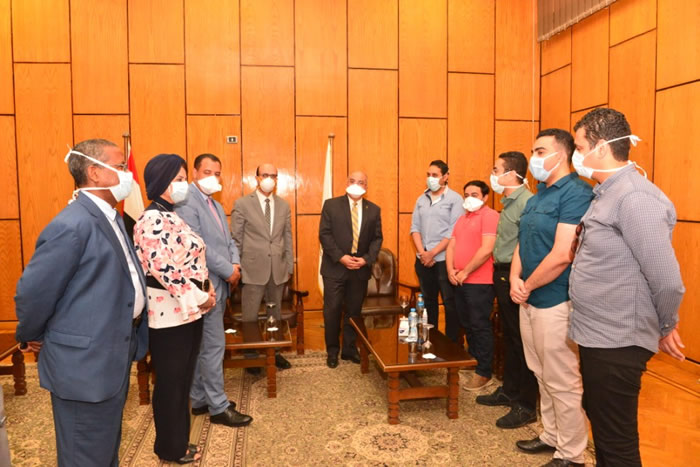 رئيس جامعة أسيوط يكرم الفريق الطبي من أبناء الجامعة بعد عودتهم بسلام من العمل بمستشفى العزل بأسنا 26 أبريل 2020