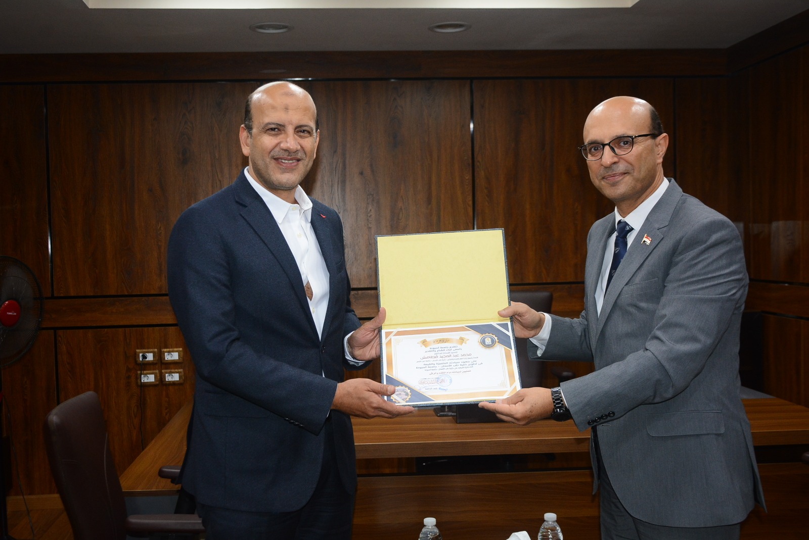 وأهدى الدكتور أحمد المنشاوي رئيس جامعة أسيوط، المشرف السابق على كلية طب الأسنان ؛ درع الجامعة، وشهادة تقدير؛ تقديرا له، مؤكدا حرص الجامعة على تكريم كل مسئول بذل جهداً؛ لخدمة الجامعة خلال توليه المسئولية؛ ليأتي من يخلفه، ويستكمل ما قام به، مضيفاً أن هذا النهج تسعى جامعة أسيوط إلى تكريسه، وهو أنه لن يبدأ أي مسئول من الصفر، بل سيُكمل مسيرة العمل.
