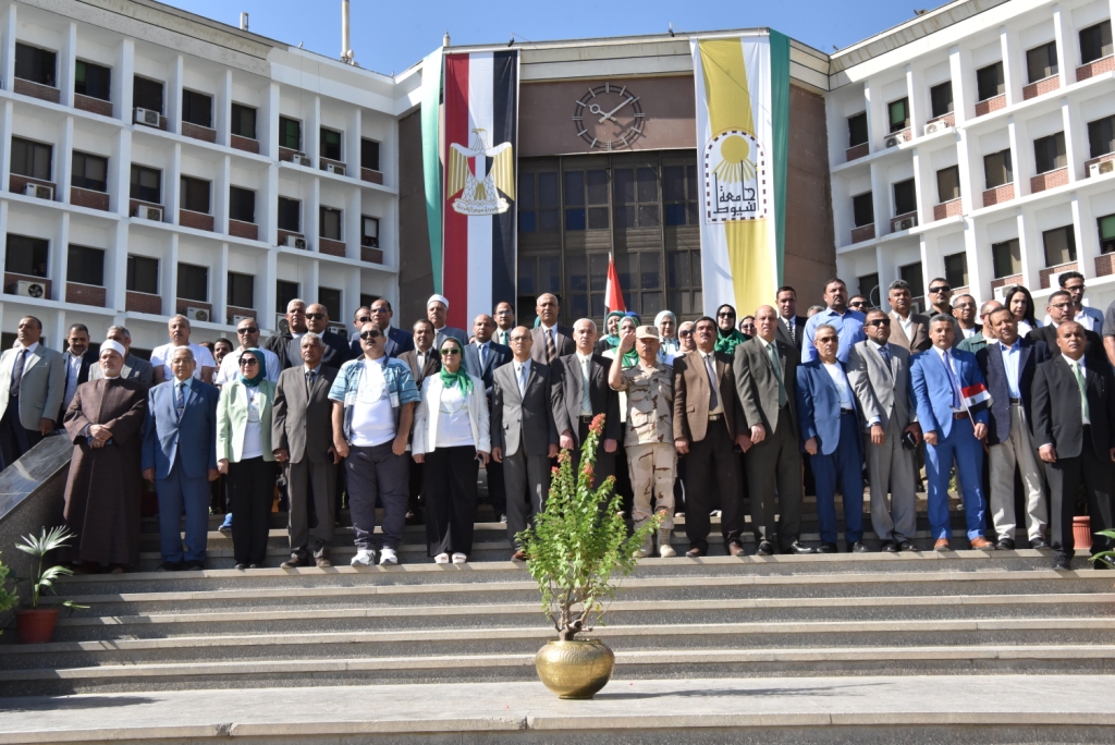 وأضاف الدكتور ثابت عبد المنعم مدير مركز الدراسات والبحوث البيئية الى ان الاحتفالية بدأت بإنطلاق ماراثون المناخ تحت إشراف كلية التربية الرياضية، ثم اصطفاف إدارة الجامعة وأعضاء مجلس الجامعة والسادة أعضاء هيئة التدريس والمشاركين، بمشاركة أكثر من ألف طالب من مختلف كليات الجامعة أمام المبنى الإدارى، مرتدين تيشرتات تحمل شعار الاحتفالية وتضمنت أيضا طابور عرض للطلاب المشاركين في فعاليات شهر البيئة من جميع كليات الجامعة وجامعة أسيوط الأهلية، والذين قاموا بترديد ميثاق " جامعة أسيوط ومستقبلنا الأخضر" الذى نص على التعهد بدعم جهود الدولة المصرية للحد من مشاكل البيئة ومجابهة المخاطر التى تهددها والتعاون من أجل تحقيق بيئة آمنة سالمة لنا وللأجيال القادمة حيث قام الحضور بترديد القسم قبل الانطلاق في مسيرة شملت معظم كليات الجامعة، كما أقيم على هامش افتتاح الاحتفالية معرضاً شمل عرض لعدد من الأعمال الفنية لكلية التربية النوعية بعنوان "التجليات الفنية لعلاقة الإنسان بالطبيعة"، وشمل عرضاً لعدد من الأوراق البحثية في مجال البيئة من بعض كليات الجامعة.