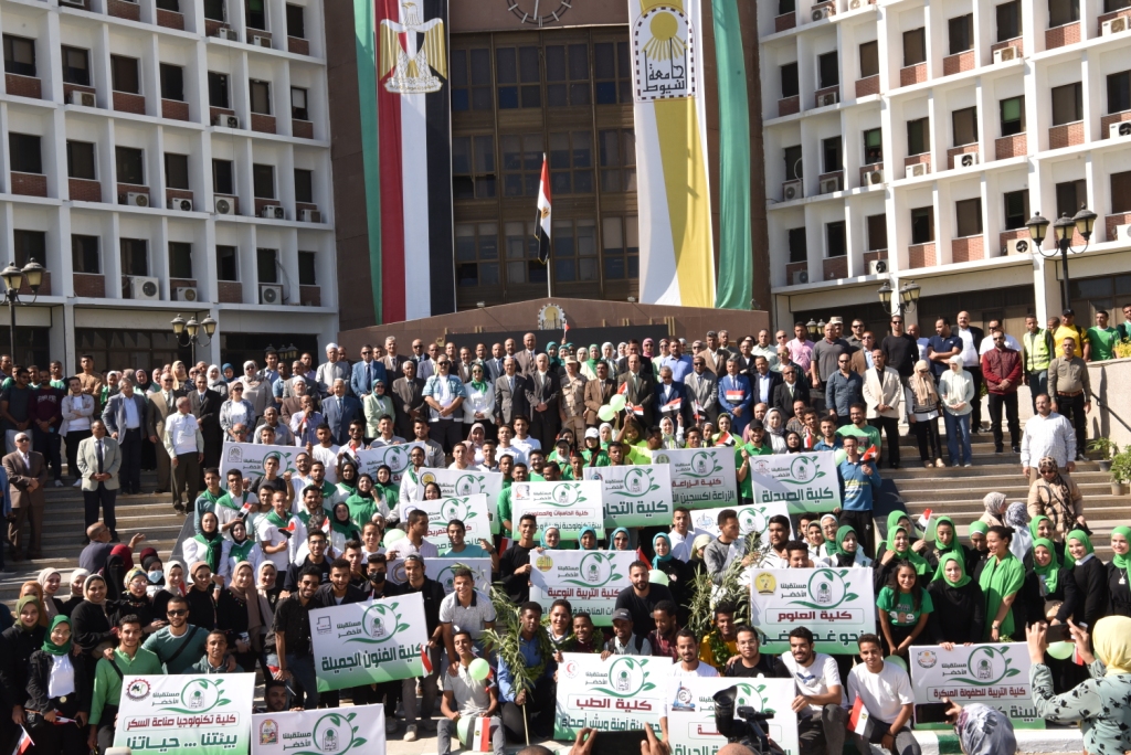 وفي كلمتها أشادت الدكتورة مها غانم بمدى الوعي البيئي لدى أبناء الجامعة على إختلاف مواقعهم وحرصهم على المشاركة في إيجاد حلول لمختلف القضايا البيئية، وخاصة تغير المناخ والذي يعد من أهم التحديات التى تواجه التنمية فى القرن الحادى والعشرين، ومن هنا تأتي أهمية مؤتمر المناخ بشرم الشيخ وهو قمة سنوية تحضرها 197 دولة من أجل مناقشة تغير المناخ، وما تفعله هذه الدول لمواجهة هذه المشكلة ومعالجتها، ويعد جزءاً من اتفاقية الأمم المتحدة الإطارية بشأن التغير المناخي، وهي معاهدة دولية وقعتها معظم دول العالم بهدف الحد من تأثير النشاط البشري على المناخ، والذي أصبح يمثل خطراً داهماً على البيئة بسبب الملوثات البيئية وأوضحت ايضاَ أن الاحتفالية تمتد طوال شهر نوفمبر وذلك بالتنسيق والتعاون مع قطاع التعليم والطلاب، بمشاركة أكثر من ألف طالب من مختلف كليات الجامعة, مشيرا الى ان احتفالية "جامعة أسيوط ومستقبلنا الأخضر " تأتى تماشيا مع مبادرة "إتحضر للأخضر" التى تأتى في إطار الإستراتيجية القومية للتنمية المستدامة "مصر ٢٠٣٠"، وتستهدف تغيير السلوكيات، ونشر الوعي البيئي، وحث المواطنين وخاصةً الشباب على المشاركة في الحفاظ على البيئة والموارد الطبيعية؛ لضمان استدامتها؛ حفاظًا على حقوق الأجيال القادمة. كما تهدف المبادرة إلى نشر الوعي بالحفاظ على المحميات الطبيعية وإدارتها وفق المستويات العالمية بما يضمن الحفاظ على توازن البيئة وتعظيم فرص التنمية الاقتصادية والاجتماعية.