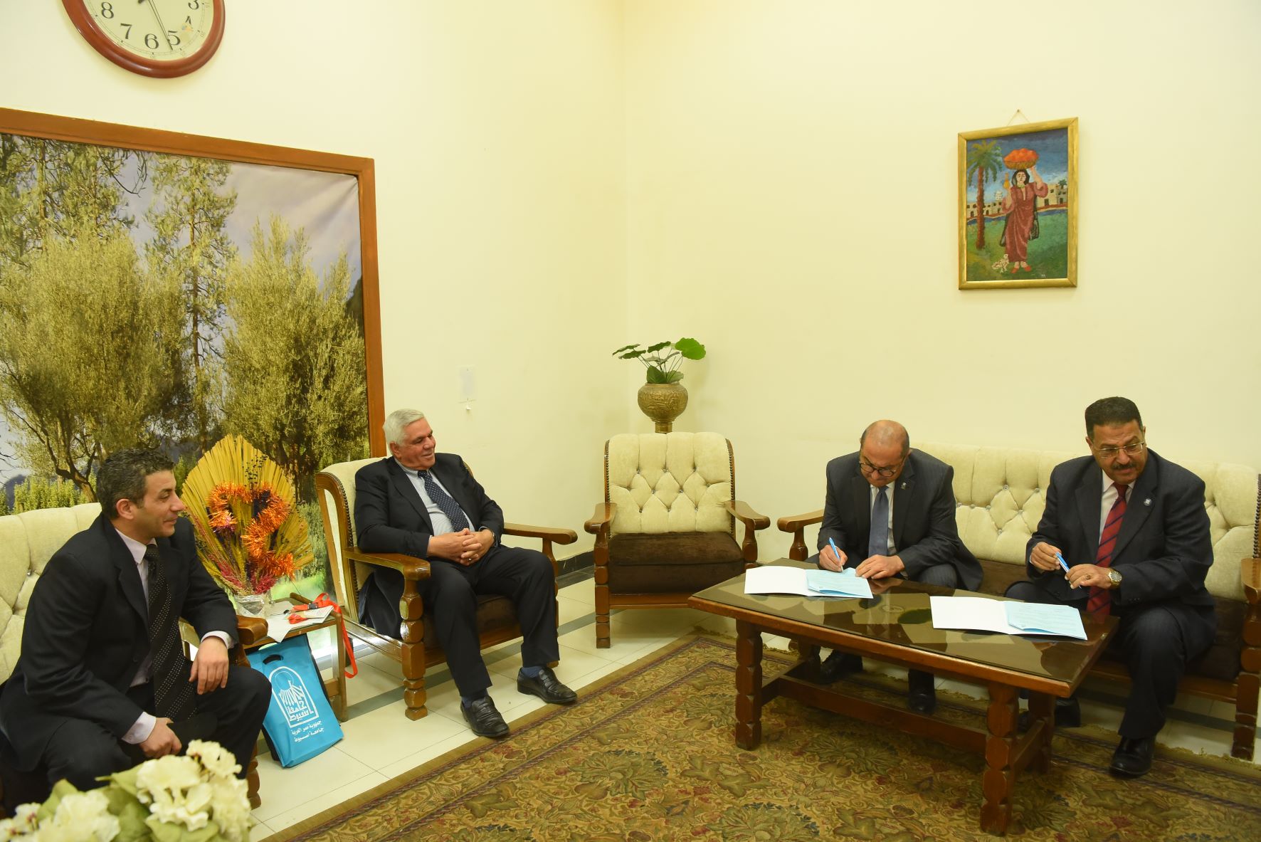 وأعلن الدكتور طارق الجمال رئيس جامعة أسيوط أنه تم خلال اللقاء توقيع بروتوكول تعاون بين الجامعة ومؤسسة دار المعارف ومجلة أكتوبر والمركز العربى للبحوث والإدارة (أراك) إيمانا من الطرفين بأهمية نشر العلم والثقافة فى حياة الفرد والمجتمع، ورغبة فى مجالات نشر العلم والثقافة والانتفاع المشترك بإمكانات ونشاطات كل منهما بما يحقق المصالح والقواعد المشتركة لكليهما الأمر الذى يعود على الطلاب والعاملين بالجامعة بالنفع العام.