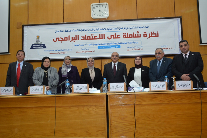 شهدت جامعة أسيوط الملتقى السابع للهيئة القومية لضمان جودة التعليم والاعتماد مع مراكز ضمان الجودة بالجامعات المصرية تحت شعار "شراكة إستراتيجية ووحدة هدف" وبعنوان "نظرة شاملة على الاعتماد البرامجي" ضمن سلسلة لقاءات تبادل الخبرات وتقديم الدعم الفني لمراكز ضمان الجودة بمؤسسات التعليم العالي وذلك بحضور والدكتور طارق الجمال رئيس الجامعة و الدكتورة يوهانسن عيد رئيس مجلس إدارة الهيئة القومية لضمان جودة التعليم والاعتماد والدكتور إبراهيم إسماعيل مدير مركز ضمان الجودة بالجامعة و الدكتورة عزة أغا والدكتورة راجية طه والدكتور علاء عبد الغفار نواب رئيس الهيئة لشئون التعليم العالي والتعليم الأزهري والتعليم قبل الجامعي، إلى جانب لفيف من عمداء ووكلاء الكليات و مديري وأعضاء مراكز ضمان الجودة بمختلف الجامعات المصرية.