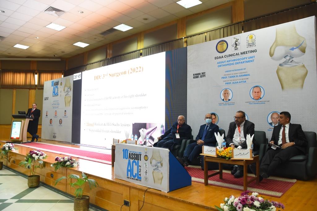 جاء ذلك خلال افتتاحه الدورة العاشرة للرباط الصليبي والمتزامنة مع انعقاد اللقاء الإكلينيكي لجمعية جراحة مناظير المفاصل المصرية بالتعاون مع وحدة مناظير المفاصل بالجامعة، والتي شهدت حضور الدكتورة مها غانم نائب رئيس الجامعة لشئون خدمة المجتمع وتنمية البيئة، والدكتور علاء عطية عميد كلية الطب ورئيس مجلس إدارة المستشفيات الجامعية، والدكتور محمد الشرقاوي أستاذ و رئيس قسم العظام، والدكتور عادل حامد رئيس جمعية جراحة مناظير المفاصل المصرية ، والدكتور محمد عبد الحميد رئيس الوحدة ومقرر اللقاء الإكلينيكي، والدكتور هشام القاضي رئيس دورة الرباط الصليبي، والدكتور حاتم جلال زكي منظم الدورة.