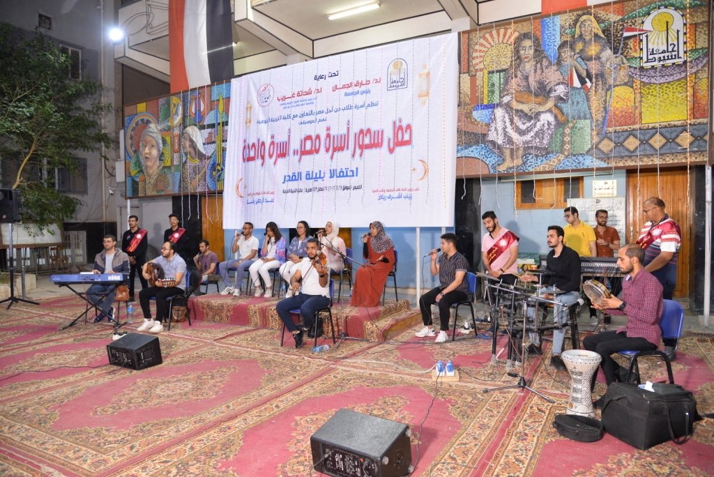 وكشف الدكتور شحاتة غريب أن حفل سحور أسرة مصر يأتى تأكيداً على حرص إدارة الجامعة على التأكيد على وحدة النسيج الوطنى وتعزيز روح الإنتماء والتسامح الديني لدى الطلاب، مشيراً إلى أن الحفل تتضمن تكريم الأستاذ عز الدين المنصورى مدير عام رعاية الشباب، وكلمة للدكتور عاصم الفبيصى والتى أوضح خلالها فضل ليلة القدر وجلال قدرها ، وكذلك عدداً من الابتهالات والتواشيح والأغاني الدينية التى قدمها طلاب التربية الموسيقية بالكلية بقيادة المايسترو الدكتور منتصر القللى رئيس القسم.