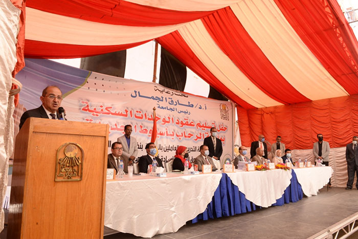 جاء ذلك خلال احتفال الجامعة بتوزيع عقود الوحدات السكنية التي طرحها خلال الشهور الماضية في قرعة علنية لنحو ٤٨٠ منتفع من السادة أعضاء هيئة التدريس ومعاونيهم والسادة العاملين بواقع 140 لأعضاء هيئة التدريس و 340 للعاملين، وهو الاحتفال الأول من نوعه فى تاريخ الجامعة ، والذى جاء بحضور الدكتور شحاتة غريب شلقامى نائب رئيس الجامعة لشئون التعليم والطلاب ، الدكتور أحمد المنشاوي نائب رئيس الجامعة لشئون الدراسات العليا والبحوث ، والدكتورة مها غانم نائب رئيس الجامعة لشئون خدمة المجتمع وتنمية البيئة ، المهندسة جيهان عمار رئيس جهاز أسيوط الجديدة ، الدكتور أحمد شهير مدير الاستثمار للصناديق الخاصة بالجامعة ، الأستاذ محمود بخيت أمين الجامعة السابق ، الأستاذ مصطفى حسن أمين الجامعة المساعد، والدكتور أنور إبراهيم عضو مجلس إدارة الصندوق ، ولفيف من الأساتذة وأعضاء هيئة التدريس و قيادات العمل الجامعي والادارى وقيادات جهاز تنمية مدينة أسيوط الجديدة والعاملين بالجامعة