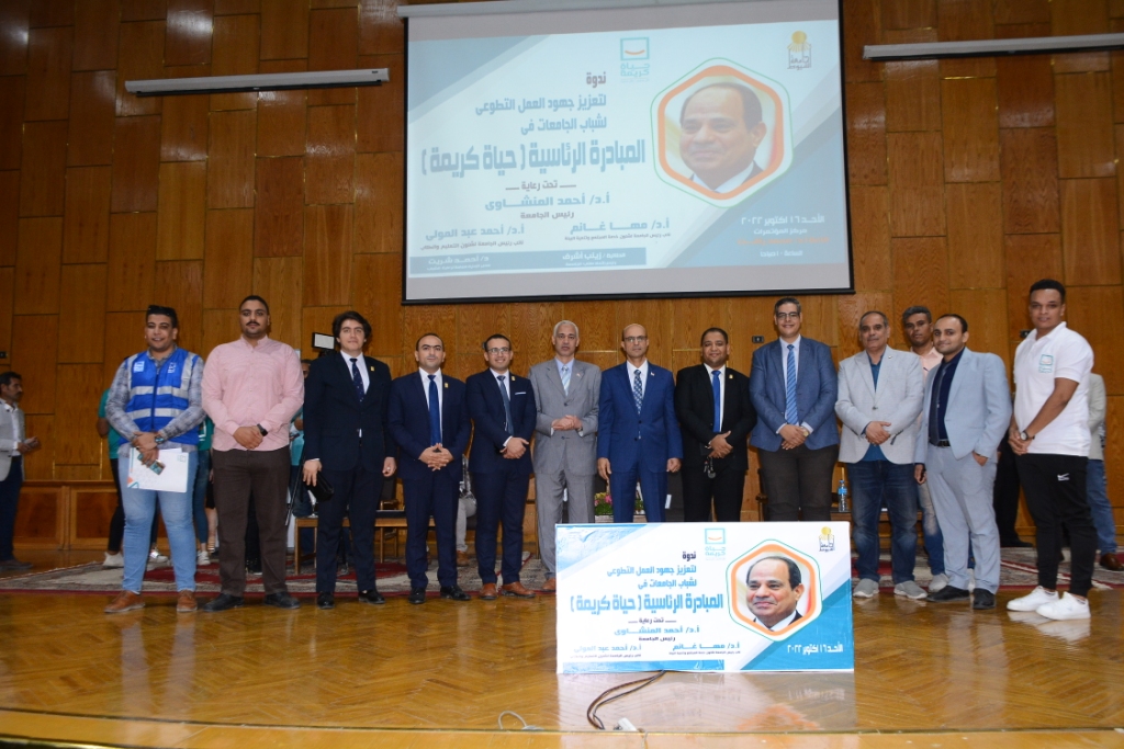 شهدت جامعة أسيوط إنطلاق وقائع فعاليات " ندوة تعزيز جهود العمل التطوعي لشباب الجامعات فى المبادرة الرئاسية حياه كريمة " ، والتى تأتى تحت رعاية وبحضور الدكتور أحمد المنشاوى القائم بأعمال رئيس الجامعة والدكتورة مها غانم نائب رئيس الجامعة لشئون خدمة المجتمع وتنمية البيئة والدكتور أحمد عبد المولى القائم بعمل نائب رئيس الجامعة لشئون للتعليم والطلاب والدكتور خالد عبد الناصر مدير القطاع التنفيذى بمؤسسة حياة كريمة ، والمهندس مينا ابراهيم منسق عام حياة كريمة ، والدكتور محمد سامى القاضى منسق مساعد حياة كريمة بأسيوط وبمشاركة نخبه من عمداء وكليات الجامعة ولفيف من اعضاء هيئة التدريس بالجامعة ومعاونيهم إلى جانب حشد من طلاب جامعة اسيوط.