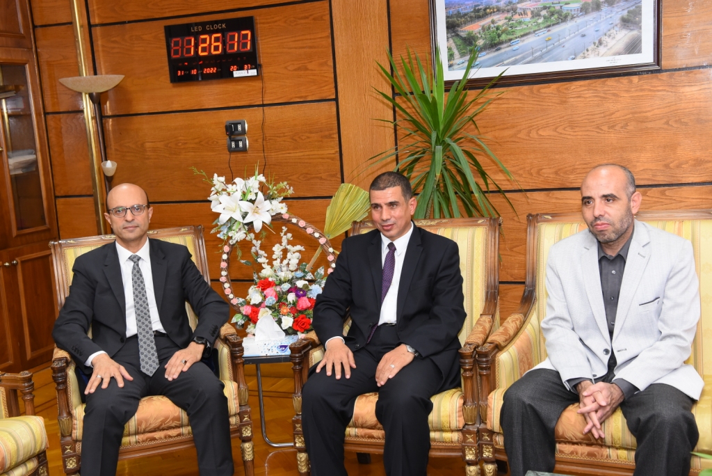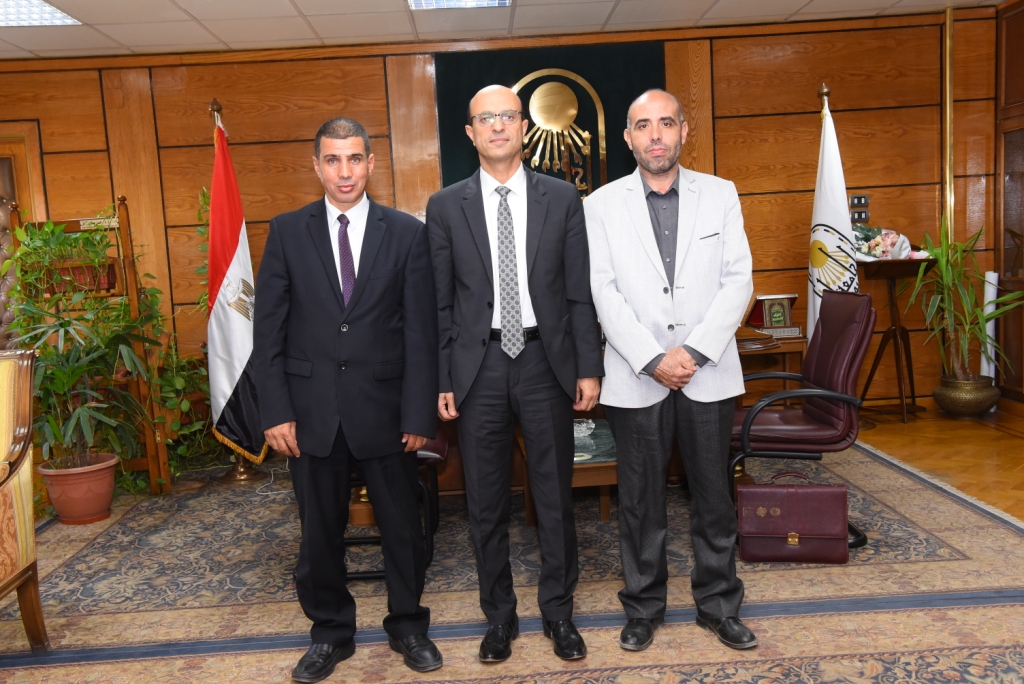 استقبل الدكتور احمد المنشاوى القائم بعمل رئيس الجامعة الدكتور تاج عبد الجابر رئيس جامعة أسيوط الجديدة التكنولوجية، والدكتور جمال محمد زايد عميد كلية العلوم الصحية بالجامعة التكنولوجيا وذلك لبحث سبل التعاون والعمل على التنسيق بين الجامعتين للاستعانة بأعضاء هيئة التدريس من كلياتى الهندسة وطب الاسنان بجامعة اسيوط ولتقديم تقرير عن سير العمل واحدث المستجدات بجامعة أسيوط الجديدة التكنولوجية, كما يهدف اللقاء الى الاستعانة بخبرات جامعة اسيوط فى تفعيل الانشطة الطلابية والعمل على رفع الوعى الثقافى والفكرى لدى الطلاب الجامعة التكنولوجيا.