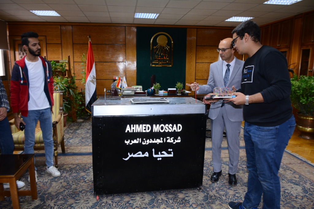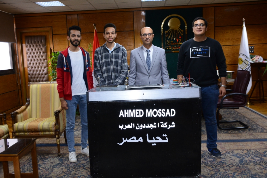 أستقبل الدكتور أحمد المنشاوى القائم بأعمال رئيس جامعة أسيوط الطالب أحمد مسعد بقسم الفيزياء الإلكترونية بكلية العلوم والذى نجح فى ابتكار سلة نفايات ذكية تعمل أوتوماتيكياً بالطاقة الشمسية .