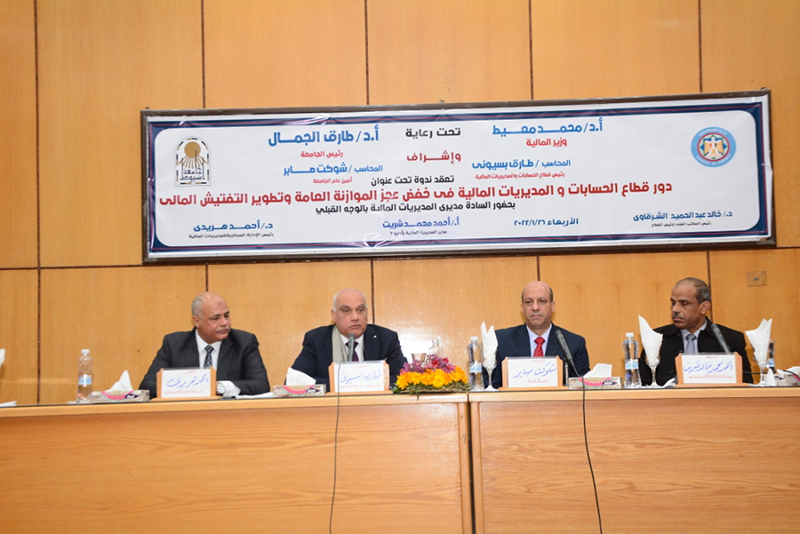 وتحدث الأستاذ طارق بسيونى رئيس قطاع الحسابات والمديريات المالية بالوزارة عن سعادته للمشاركة فى زيارته الأولى لأسيوط وتوجه بالشكر لجامعة أسيوط ورئيس الجامعة ومديرى المديريات موضحا فعاليات الندوة التى تقوم على عدة محاور تتمثل فى العمل على زيادة وتفعيل دور قطاع الحسابات والمديريات المالية فى خفض عجز الموازنة العامة للدولة تنفيذا لتوجيهات معالى وزير المالية بضرورة استدامة تحقيق المستهدفات الاقتصادية على نحو يساعد فى إرساء دعائم الجمهورية الجديدة والمضى قدما فى مسيرة البناء والتنمية، واستكمال دور التفتيش المالى بالمديريات من خلال التأكيد على تطبيق أهم النتائج الايجابية المترتبة على حصر المخالفات المتكررة بالجهات، وتنميط الوحدات الحسابية على مستوى المحافظة ووضع برنامج زمنى لتنفيذ خطة التفتيش. موضحا أيضا دور الوحدات الحسابية فى تنفيذ موازنة البرامج والأداء بالوحدات الحسابية فى إطار خطة الدولة الاقتصادية ضمن محاور التنمية المستدامة وصولا لمصر 2030، وأيضا القاء الضوء على قطاع الحسابات والمديريات المالية وممثلى وزارة المالية فى تنفيذ الخطة الاستراتيجية لوزارة المالية من خلال محاور التنمية المستدامة وصولا لمصر 2030 .