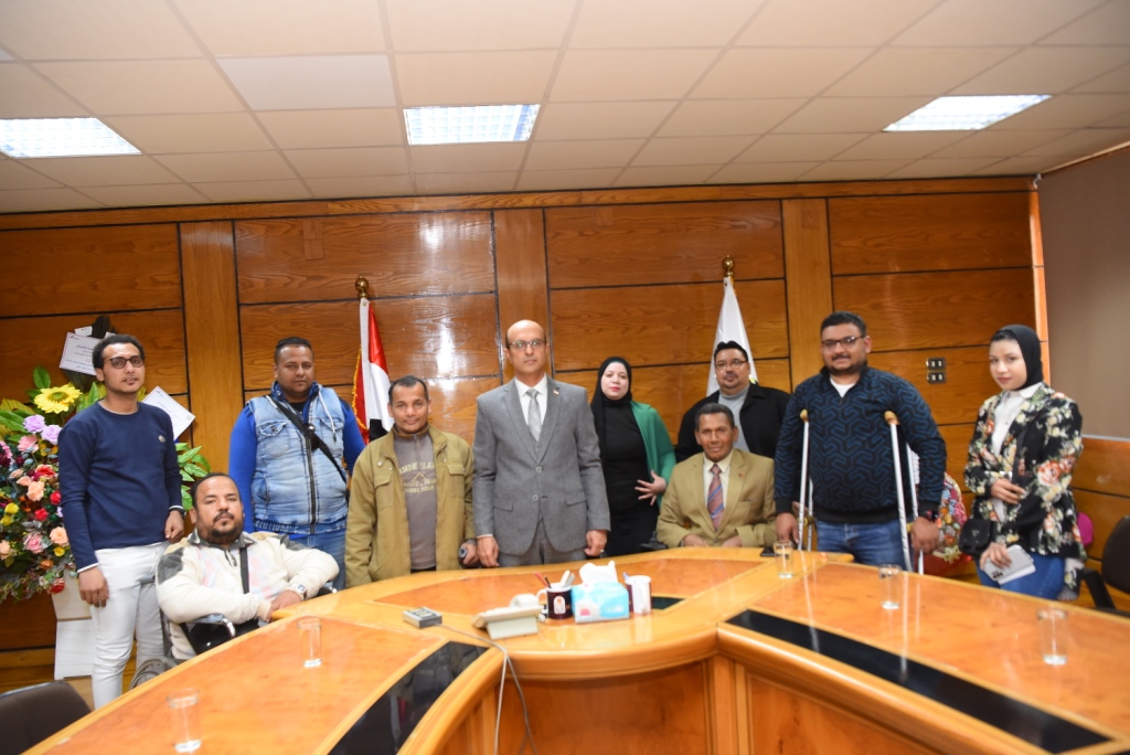 وخلال اللقاء أكد الدكتور أحمد المنشاوى على حرص إدارة الجامعة على مواصلة ما تقدمه من دعم ورعاية لذوى الهمم من أبناء الجامعة ورفع درجة الإتاحة التى تضمن التيسير عليهم فى حياتهم الجامعية وهو ما أثمر عن إنفراد الجامعة على مستوى جامعات الصعيد بمركز رعاية الطلاب ذوى الإعاقة والذى يضم أول معمل لاختبارات المكفوفين وكذلك أول نادى إجتماعى على مستوى الجامعات المصرية للطلاب من ذوى الهمم، مشيراً إلى أن الفترة المقبلة سوف تشهد توسيع قاعدة المستفيدين من خدمات الجامعة المقدمة لذوى الإعاقة فى مختلف المجالات.