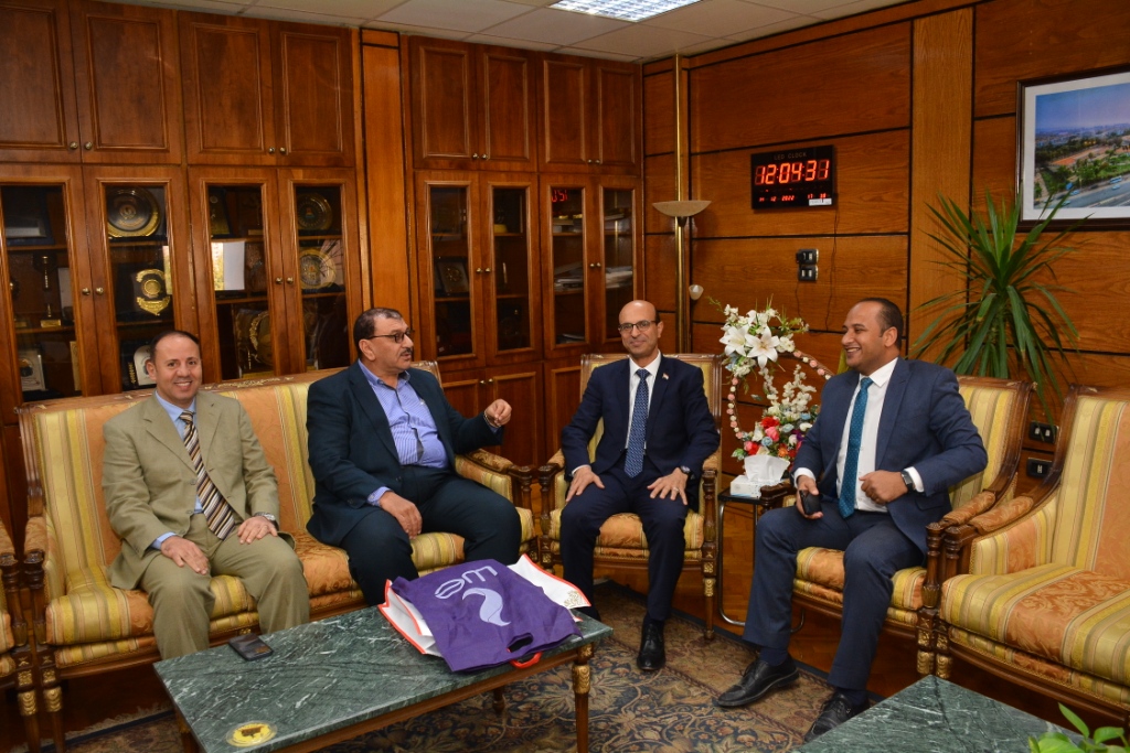 جاء ذلك خلال استقبال سيادته لوفداَ ممثلاَ عن الشركة المصرية للاتصالات WE و الذى يضم الدكتور المهندس فتحي قاسم رئيس قطاعات وسط وجنوب الصعيد، والدكتور المهندس هاني ثروت وكيل الوزارة، والمهندس أحمد أبو خليل مدير إدارة العلاقات الحكومية لقطاع وسط الصعيد .