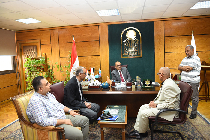 جاء ذلك خلال اجتماعه مع الاستاذ مسعود على حسين أمين عام الشهر العقاري ووكيل أول وزارة ، والدكتور وائل خضراوى أمين مساعد الشهر العقارى، وذلك بحضور الأستاذ وائل محمد محمود أمين عام الجامعة المساعد ، والأستاذ مصطفى شعيب المشرف على مجمع الخدمات المركزية ، حيث استهدف الاجتماع مناقشة الخطوات التى تم الانتهاء منها والأعمال الجارية وذلك تمهيداً لنقل كتب الشهر العقارى من مقره بالجامعة القديمة إلى مجمع الخدمات المركزية بالحرم الجامعى .