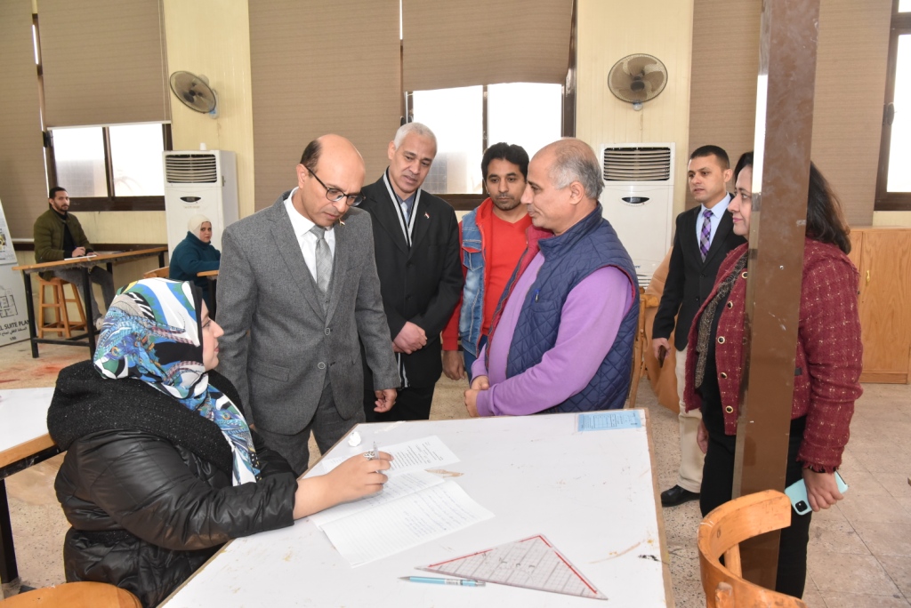 أعقب ذلك توجه رئيس الجامعة ونائبه إلي كلية الفنون الجميلة وكان في استقباله الدكتور عزت عبد المنعم القائم بعمل عميد الكلية ، والدكتور محمد عبد الحكيم وكيل الكلية لشئون التعليم والطلاب ، والدكتورة سحر بطرس وكيل الكلية لشئون خدمة المجتمع وتنمية البيئة ، والدكتور محسن سليم رئيس قسم النحت بالكلية ، حيث تفقد سيادته سير العملية التعليمية بقسم الجرافيك ، أعقب ذلك متابعة سيادته سير أعمال امتحانات الدراسات العليا بالكلية ( ماجستير ) لكل من قسم النحت والتصوير والعمارة لعدد اكثر من 10 طلاب عن مادة أصول ومناهج البحث العلمي ، كما أجري سيادته حديثاً مع الطلاب للاطمئنان علي حسن سير الإمتحانات والتأكد من توافر كافة سبل الرعاية للممتحنين داخل اللجنة .