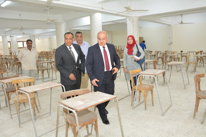 تفقد الدكتور طارق الجمال رئيس جامعة أسيوط اليوم صالات الامتحانات والتي تشهد انتهاء أعمال تكييف الصالات عن طريق تركيب 50 جهاز تكييف أفقي 6 حصان على امتداد الصالات السفلية المواجهة لكلية الهندسة .