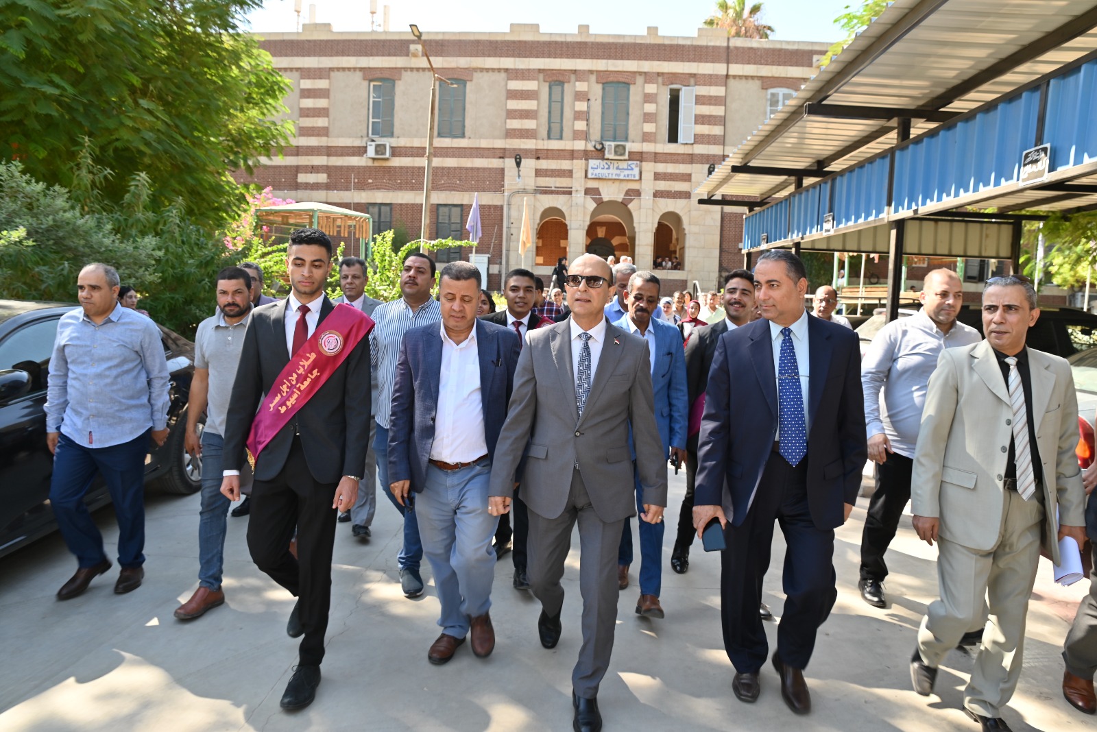 شملت الجولة كليات: الآداب، التجارة، الحقوق، علوم الرياضة، الطب البيطري، الصيدلة، الطب البشري، والهندسة، وذلك برفقة الدكتور أحمد عبد المولي نائب رئيس الجامعة لشئون التعليم والطلاب، وبحضور مسئولي وطلاب أسرة من أجل مصر، إلى جانب عمداء الكليات ووكلائها وعدد من رؤساء الأقسام وأعضاء هيئة التدريس والجهاز الإداري.