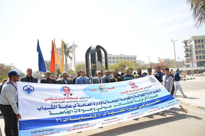 رئيس جامعة أسيوط يتقدم مسيرة طلابية حاشدة انطلاقا للدورة الكشفية الـ40 والـ26 الإرشادية ويشارك في مراسم أداء تحية العلم و السلام الجمهوري و طابور العرض