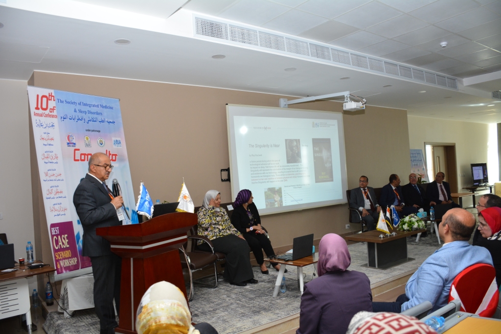 جاء ذلك خلال مشاركة سيادته فى البرنامج العلمى للمؤتمر السنوى العاشر لجمعية الطب التكاملى واضطرابات النوم والمنعقد بجامعة بدر بعنوان "كونسلتو" بحضور الدكتور مصطفى كمال رئيس جامعة بدر ورئيس مجلس إدارة الجمعية ، والدكتور أحمد عبده جعيص رئيس جامعة أسيوط السابق ورئيس شرف المؤتمر والدكتور منصور الكباش رئيس جامعة سفنكس بأسيوط الجديدة والدكتورة مها غانم نائب رئيس جامعة أسيوط لشئون خدمة المجتمع وتنمية البيئة والدكتور علاء عطية عميد كلية الطب ورئيس مجلس إدارة مستشفيات أسيوط الجامعية والدكتورة سوزان سلامة أستاذ أمراض الصدر ورئيس المؤتمر ، والدكتورة أسماء عبد الناصر عميدة معهد دراسات وبحوث البيولوجيا الجزيئية والدكتورة دينا ممدوح عميدة كلية تكنولوجيا وصناعة السكر والدكتورة أماني عمر وكيل كلية الطب والمهندس ياسر عبدالله رئيس جهاز مدينة ناصر غرب أسيوط والدكنورة مديحة درويش عميدة كلية الطب البيطرى وسط كوكبة من المشاركين من القيادات الأكاديمية والإدارية والطبية بجامعات أسيوط وبدر وسفنكس إلى جانب حشد من أطباء المستشفيات الجامعية ومستشفيات وزارة الصحة والتامين الصحي .