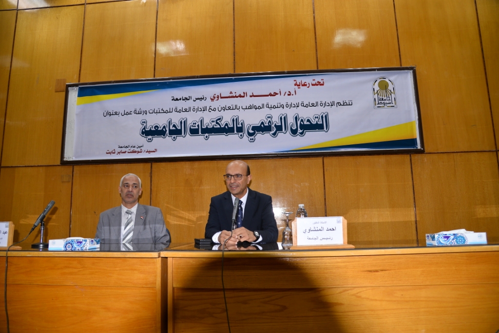 شهد الدكتور أحمد المنشاوي القائم بعمل رئيس جامعة أسيوط فعاليات اليوم الثانى من ورشة عمل " التحول الرقمى بالمكتبات الجامعة" التى تنظمها الادارة العامة لإدارة تنمية المواهب بالتعاون مع الادارة العامة للمكتبات وبحضور الدكتور احمد عبد المولى القائم بعمل نائب رئيس الجامعة لشئون التعليم والطلاب والدكتور عبد الحميد ندا الاستاذ بقسم المكتبات والوثائق والمعلومات والمحلل الدولى فى مجال الذكاء الاصطناعى وبمشاركة حوالى 60 متدرب من مديرى واخصائى المكتبات من العاملين بقطاع المكتبات الجامعية من مختلف انحاء الجامعة.