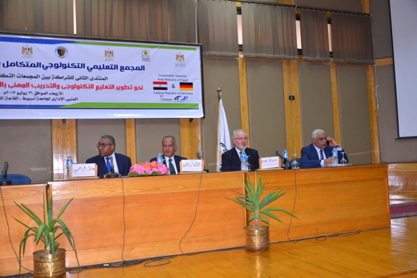 أكد الدكتور أحمد عبده جعيص رئيس جامعة أسيوط على حرص الجامعة على تحمل مسئوليتها العلمية والمجتمعية ومواصلة سعيها في تسخير ما تملكه من إمكانيات علمية وبشرية لخدمة مجتمعها وتأهيل الشباب المصري لسوق العمل وهو ما يتضمن ما تقدمه الجامعة من تسهيلات ودعم للمجمع التعليمي المتكامل بالجامعة انطلاقاً من إيمانها بما يقدمه المجمع من دور متميز ومنفرد في تقديم خدمات تعليمية وتدريبية وإرشادية تكنولوجية متقدمة وذلك لإعداد وتخريج كوادر بشرية قادرة على تلبية احتياجات سوق العمل والصناعة ومؤهلة للمنافسة في السوقين العربية والأوروبية جاء ذلك خلال استقباله للدكتور عبد الوهاب الغندور عام صندوق تطوير التعليم ، وبرنارد ستربشر المدير التنفيذي لمشروع أكاديمية العلوم بألمانيا وذلك بحضور الدكتور عادل عبده مدير مشروع المجمع التعليمي التكنولوجي المتكامل بالجامعة والدكتور ربيع محمد رفعت الاستشاري المعماري للمجمع .