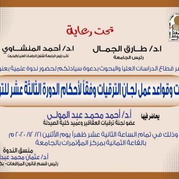يشهد الدكتور طارق الجمال رئيس جامعة أسيوط غداً الأحد 20 ديسمبر وقائع الندوة التثقيفية المنعقدة تحت عنوان "حروب الجيل الرابع وأثرها على الأمن القومي " والتي ينظمها قطاع شئون التعليم والطلاب ضمن…