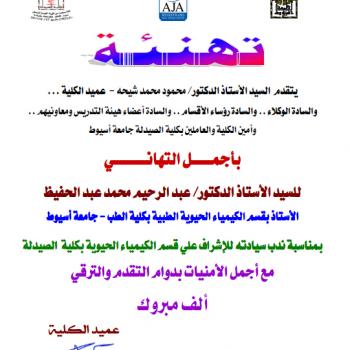 أعرب الدكتور طارق الجمال رئيس جامعة أسيوط عن بالغ سعادته باختيار عدد كبير من أعضاء هيئة التدريس بالجامعة ضمن التشكيل الرسمى للمجلس الأعلى للجامعات للجان العلمية لفحص الإنتاج العلمي لأعضاء هيئة…