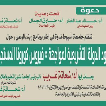 تحت رعاية الدكتور خالد عبد الغفار وزير التعليم العالي والدكتور طارق الجمال رئيس جامعة أسيوط ، يشهد الدكتور شحاتة غريب شلقامى نائب رئيس الجامعة لشئون التعليم والطلاب وأستاذ القانون الجنائي بكلية…