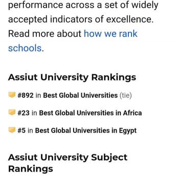 أعلن الدكتور طارق الجمال رئيس جامعة أسيوط عن نجاح الجامعة فى الحفاظ علي موقعها بين أفضل خمسة جامعات مصرية وفقاً لآخر تصنيف الصادر عن " U.S.NEWS" الأمريكي , والمختص بتصنيف الجامعات وترتيب الأفضل منها…