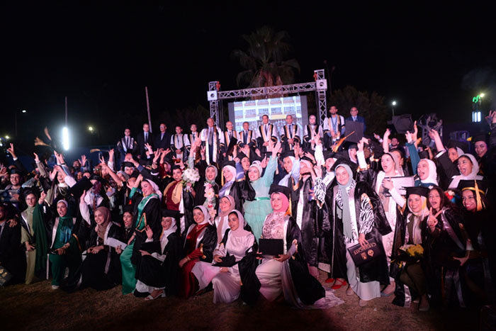 طلاب الدفعة الـ23 من أبناء كلية التجارة شعبة اللغة الإنجليزية بجامعة أسيوط يقفون وقفة حب وتقدير لأولياء أمورهم خلال احتفال الجامعة بتخرجهم 5 أغسطس 2021