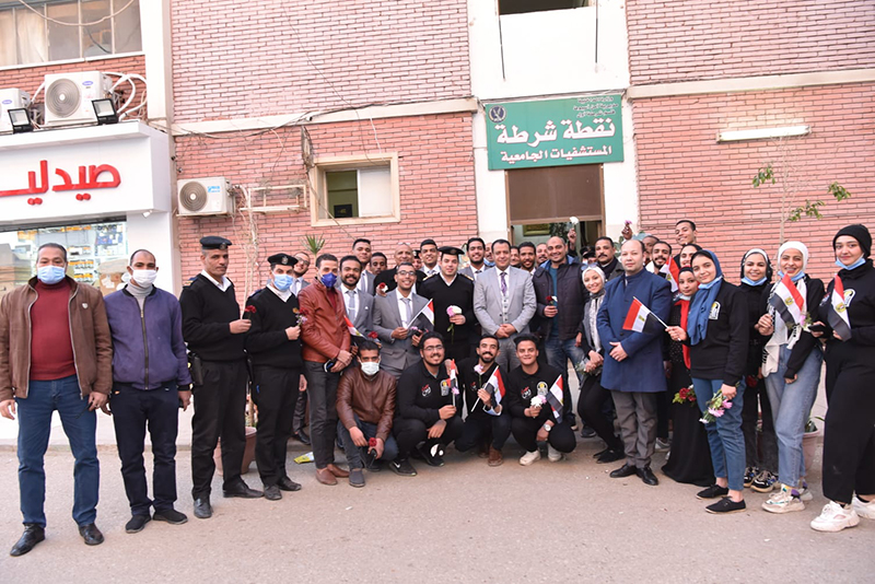 جاء ذلك تعقيباً على حرص طلاب الجامعة على المشاركة فى الاحتفال بعيد الشرطة السبعين والموافق 25 يناير من كل عام وفى هذه المناسبة توجه الدكتور شحاتة غريب نائب رئيس الجامعة لشئون التعليم والطلاب على رأس وفد طلابي وذلك لتقديم التهنئة إلى اللواء أسعد الذكير مساعد وزير الداخلية لقطاع وسط الصعيد واللواء عمر السويفي مدير أمن أسيوط بمناسبة عيد الشرطة.