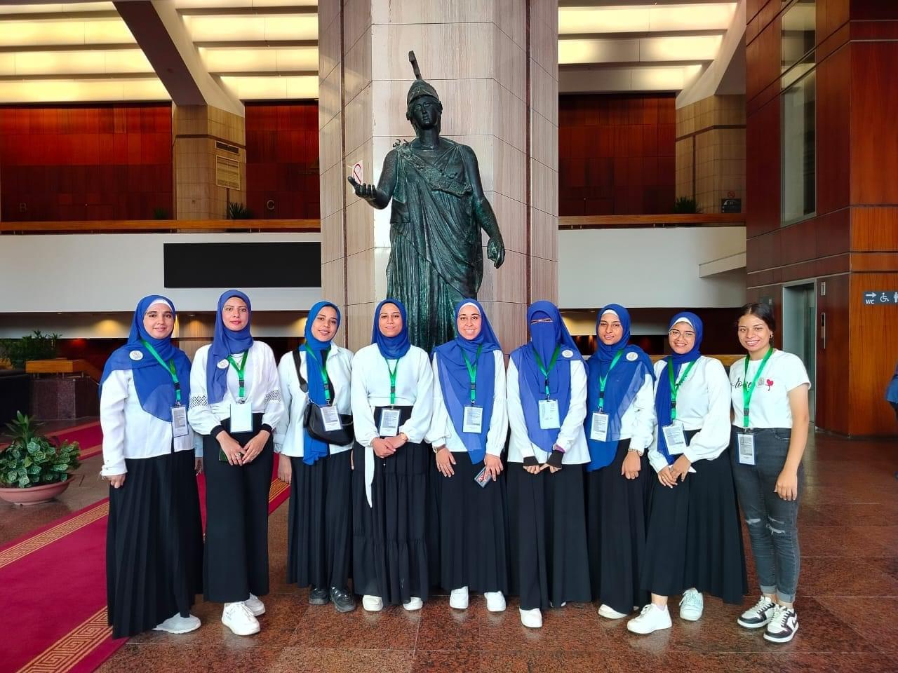 حيث شاركت الجامعة؛ بوفد طلابي، ضم (٩) طالبات من كليتّي التربية، والآداب، فضلاً عن الطلاب الدارسين بالمركز، حيث حصل الطلاب المشاركين على الثلاتة مراكز الأولى؛ كأفضل طلاب على مستوى طلاب الجامعات المصرية، المشاركة فى الدورة.