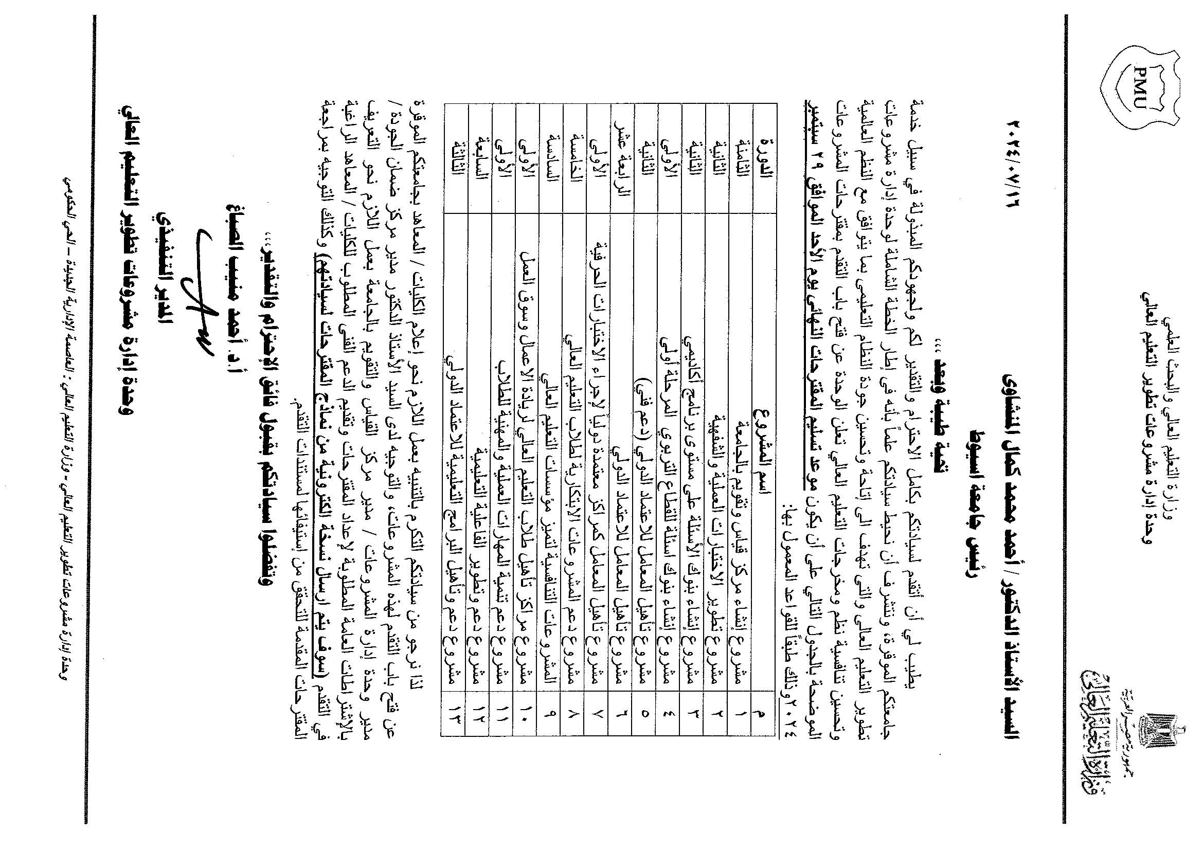 تعلن وحدة تطوير مشروعات التعليم العالي ان اخر موعد لتسلم مختلف مقترحات المشروعات (جودة ومعامل وتميز و قياس وتقويم) هو ٢٩ / ٩ / ٢٠٢٤ 17 سبتمبر 2024