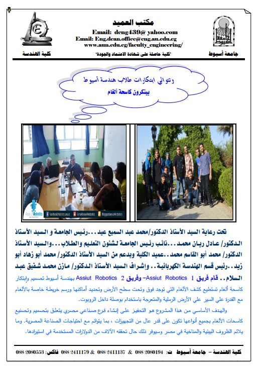 قام فريق بهندسة أسيوط تصميم وٕابتكار Assiut Robotics وفريق 2 -Assiut Robotics 1 ..
