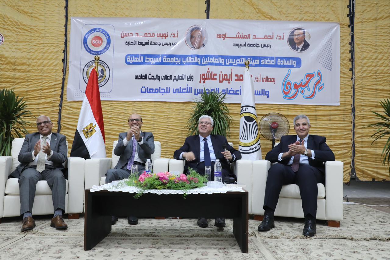 وأشار د. أيمن عاشور إلى الدعم الكبير الذى قدمته القيادة السياسية لتنفيذ حلم الجامعات الأهلية على أرض الواقع، مؤكدًا على متابعته المُستمرة من خلال الجولات التفقدية والميدانية للجامعات الأهلية المُنبثقة عن الجامعات الحكومية؛ للوقوف على جاهزيتها وانتظام العملية التعليمية بها، والاطلاع على احتياجاتها المُستقبلية، والاطمئنان على التزام الطلاب فى الدراسة.