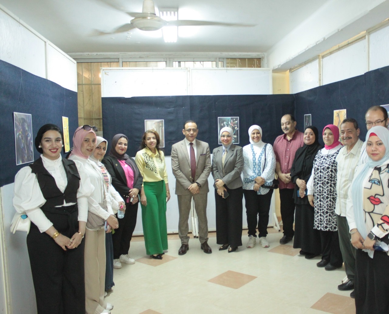 The exhibition was opened by Dr. Jamal Badr, vice president for graduate studies and research, under the supervision of Dr. Yasmin Al-kahki, dean of the Faculty of specific education, and organized by Dr. Salwa Maher Ahmed Zahran, assistant professor of design at the Department of art education, in the presence of a number of faculty members, students and those interested in the arts.