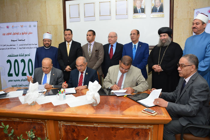 Nach den Anweisungen von Präsident Abdul-Fattah Al-Sisi, die Rolle der Beteiligung der Gemeinschaft bei der Einrichtung und Leitung staatlicher Krankenhäuser für die Entwicklung des Gesundheitssystems in Ägypten zu aktivieren, kündigte Prof. Tarek El-Gammal, Präsident der Assiut-Universität, an, dass er einen Vertrag unterzeichnet habe Kooperationsprotokoll mit fünf Parteien.