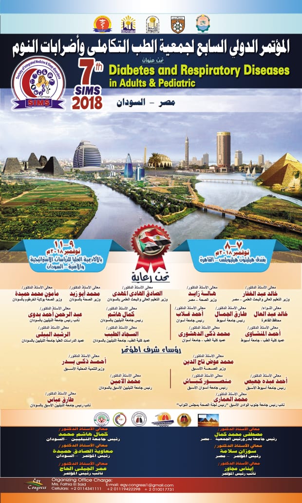 وأضافت الدكتورة سوزان سلامة أستاذ أمراض الصدر ورئيس المؤتمر أن المؤتمر هذا العام يأتي تحت عنوان "أمراض الصدر وعلاقتها بمرض السكر عند الأطفال والبالغين" والذي ينعقد تحت رعاية وزراء التعليم العالي والصحة من الجانبين المصري والسوداني ، والدكتور طارق الجمال رئيس جامعة أسيوط وبحضور الدكتورة هالة زايد وزيرة الصحة ، واللواء خالد عبد العال محافظ القاهرة ، والدكتور احمد غلاب رئيس جامعة أسوان ، والدكتور احمد زكى بدر وزير التنمية المحلية الأسبق ، والدكتور محمد عوض تاج الدين وزير الصحة الأسبق ، والدكتور احمد عبده جعيص رئيس الجامعة ، وعميدي كلية الطب بجامعتي أسيوط وأسوان ولفيف من رواد العمل الطبي من مختلف الجامعات المصرية ومستشفيات القوات المسلحة والشرطة و وزارة الصحة .