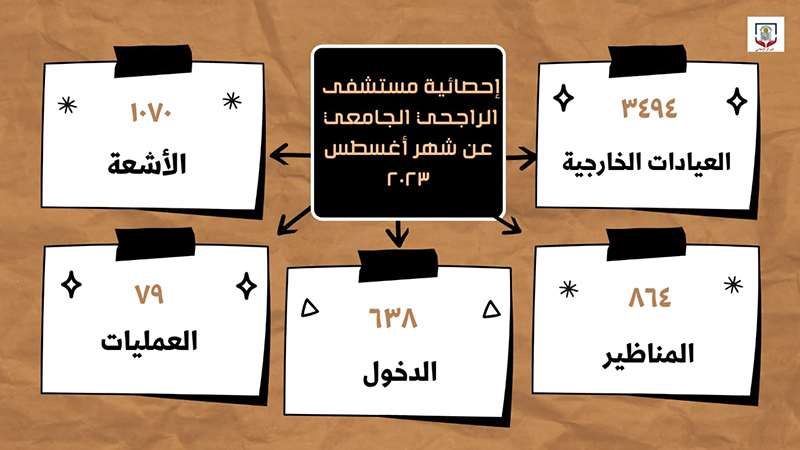 وكشف المستشفى عن أنه تم تسجيل (١٠٧٠)حالة بوحدة الأشعة، كما تم استقبال (٨٦٤) حالة بوحدة المناظير، بالإضافة إلى تسجيل (٦٣٨) حالة دخول، إلى جانب إجراء(٧٩) عملية جراحية خلال الشهر نفسه.
