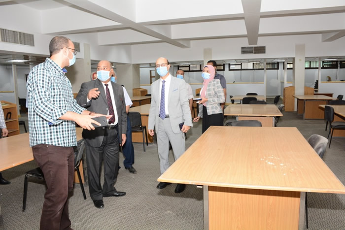 Dr. Ahmed El_Menshawy, Vice-president of Assiut University for Post Graduate Studies and Research, followes the process of equipping the Center of General Services for Post Graduate Theses