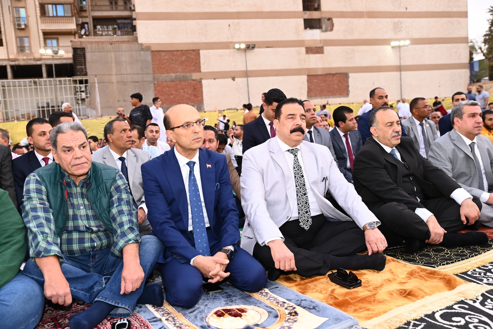 - The president of Assiut University exchanges congratulations with officials and citizens after the Eid prayer