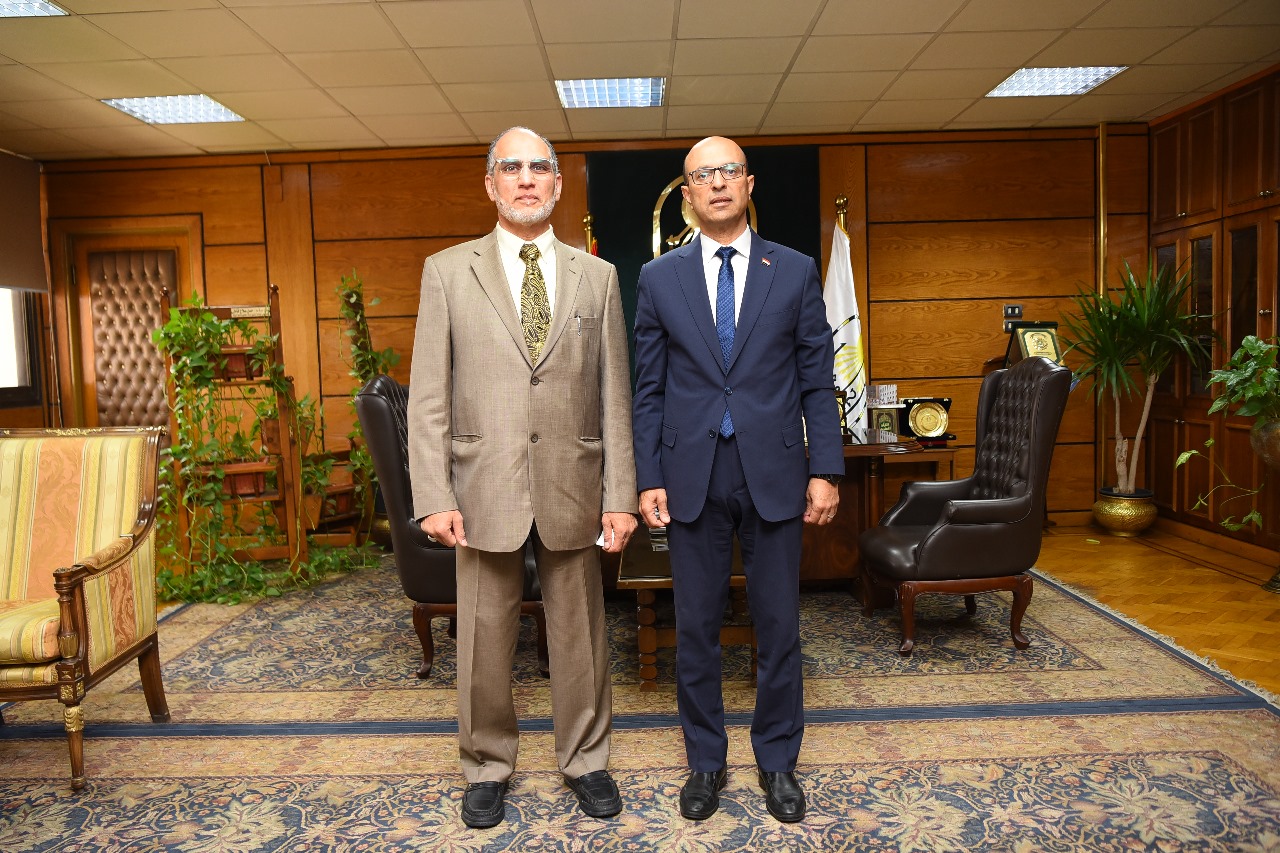 Dr. Ahmed El-Minshawy, President of Assiut University, received today, Sunday, February 23, Dr. Khaled Amin Al-Attas, Interventional Pediatric Cardiology Consultant and Head of the Umm Al-Qura Cardiac Center at Maternity and Children’s Hospital in the Kingdom of Saudi Arabia. The visit is part of the medical and academic cooperation between the university and specialized medical centers, aimed at discussing pediatric cardiac catheterization cases at the Pediatric Cardiology Unit of the University Heart Hospital and exploring the best therapeutic and surgical techniques for these cases.