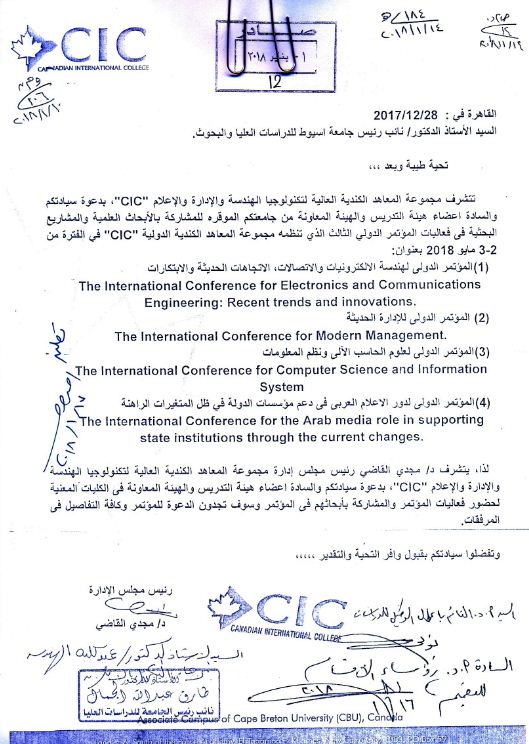 Invitation des instituts supérieurs canadiens d'ingénierie, de gestion et d'information (CIC) aux membres du corps professoral à participer à des projets de recherche scientifique et de recherche à la troisième Conférence internationale
