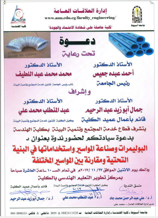 Ahmed A. Gaeis, président de l'Université d'Assiout, a rencontré une délégation du Centre français dirigée par le Dr Noha A. Rizq, directrice du Centre. Le Dr Rizq a indiqué que la délégation rencontre le président pour lui offrir un catalogue de l'Université en langue française à l'occasion du 60e anniversaire de l'université. Elle a ajouté que le catalogue est préparé par les étudiants dans le cadre de leur activité et qu'il comprend des informations sur l'université, sa fondation, sa vision et son rôle éducatif. Il fournit également une note sur les anciens présidents de l'université et les précédents campus régionaux qui devinrent plus tard des universités séparées.