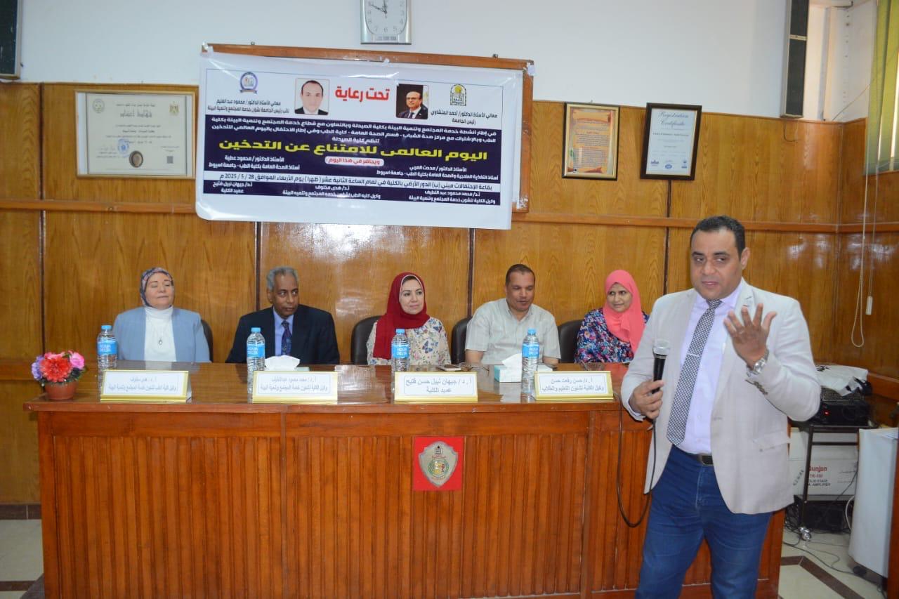 Under the supervision of Dr. Ahmed El-Minshawy, president of Assiut University, the Faculty of Pharmacy organized a health and educational day entitled "Smoking and the Prevention of Chronic Diseases such as Diabetes, anemia and obesity", in conjunction with the World No Smoking Day, in cooperation with the community service and environmental development sector of the faculties of Pharmacy and medicine, in partnership with the youth health center of the Department of public health of the Faculty of Medicine, in the presence of Dr. Mahmoud Abdel Alim, vice-president of the University for community service and environmental development, under the supervision of Dr. Alaa Attiyah, dean of the Faculty of Medicine, and Dr. Jehan Nabil Fateh, dean of the Faculty of Pharmacy.